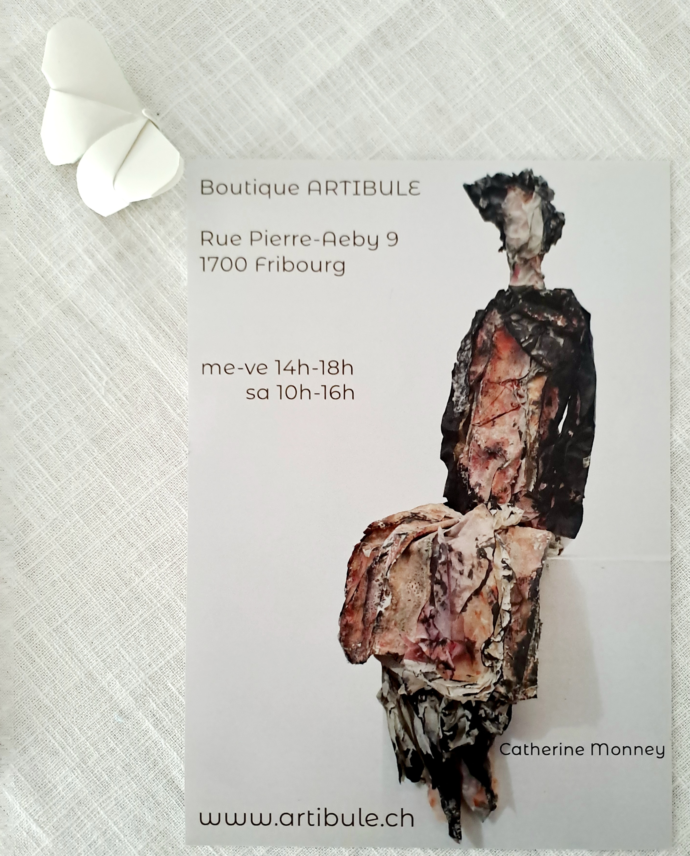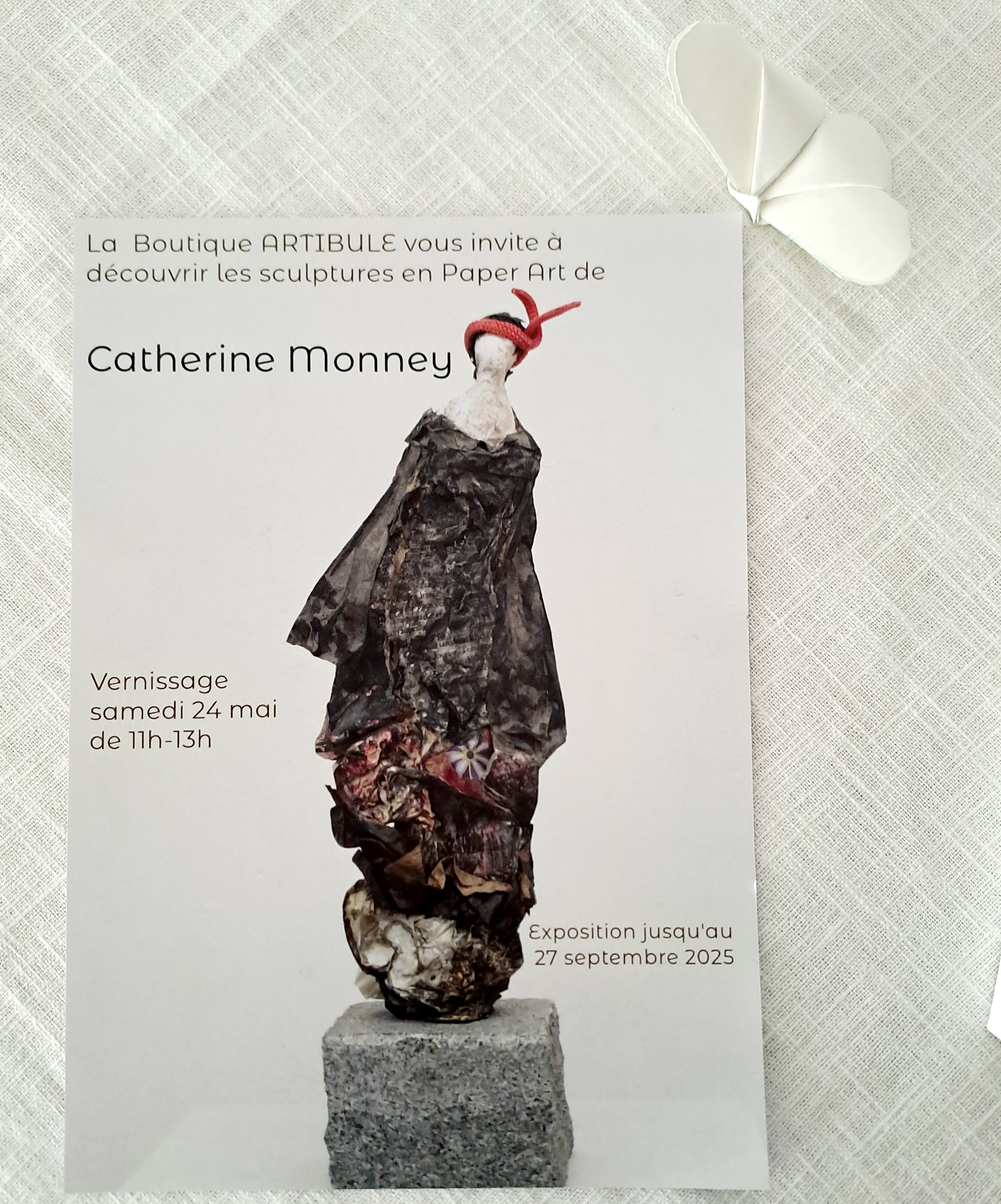 La boutique Artibule est heureuse de vous présenter les magnifiques créations en Paper Art de l’artiste Catherine Monney. C’est avec un très grand plaisir que nous vous accueillerons pour le vernissage le samedi 24 mai de 11h à 13h. L’exposition durera du 24 mai au 27 septembre. Nous nous réjouissons de votre visite et vous disons à très bientôt.