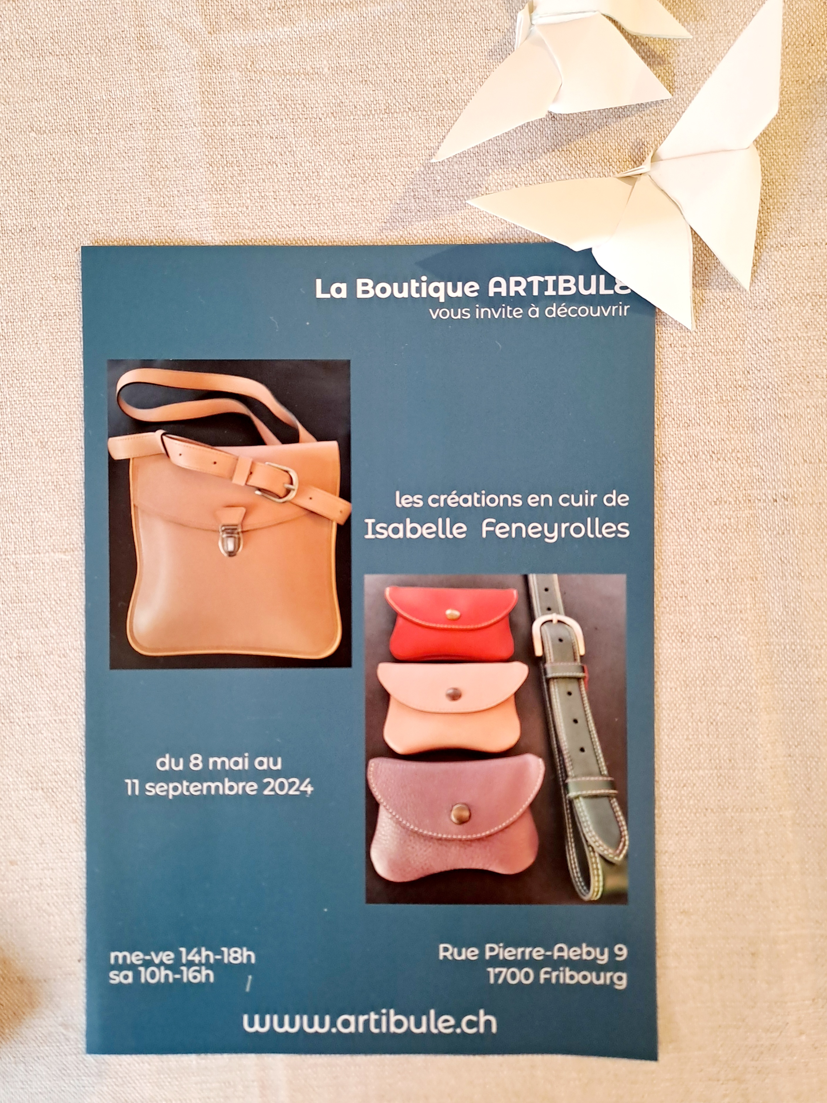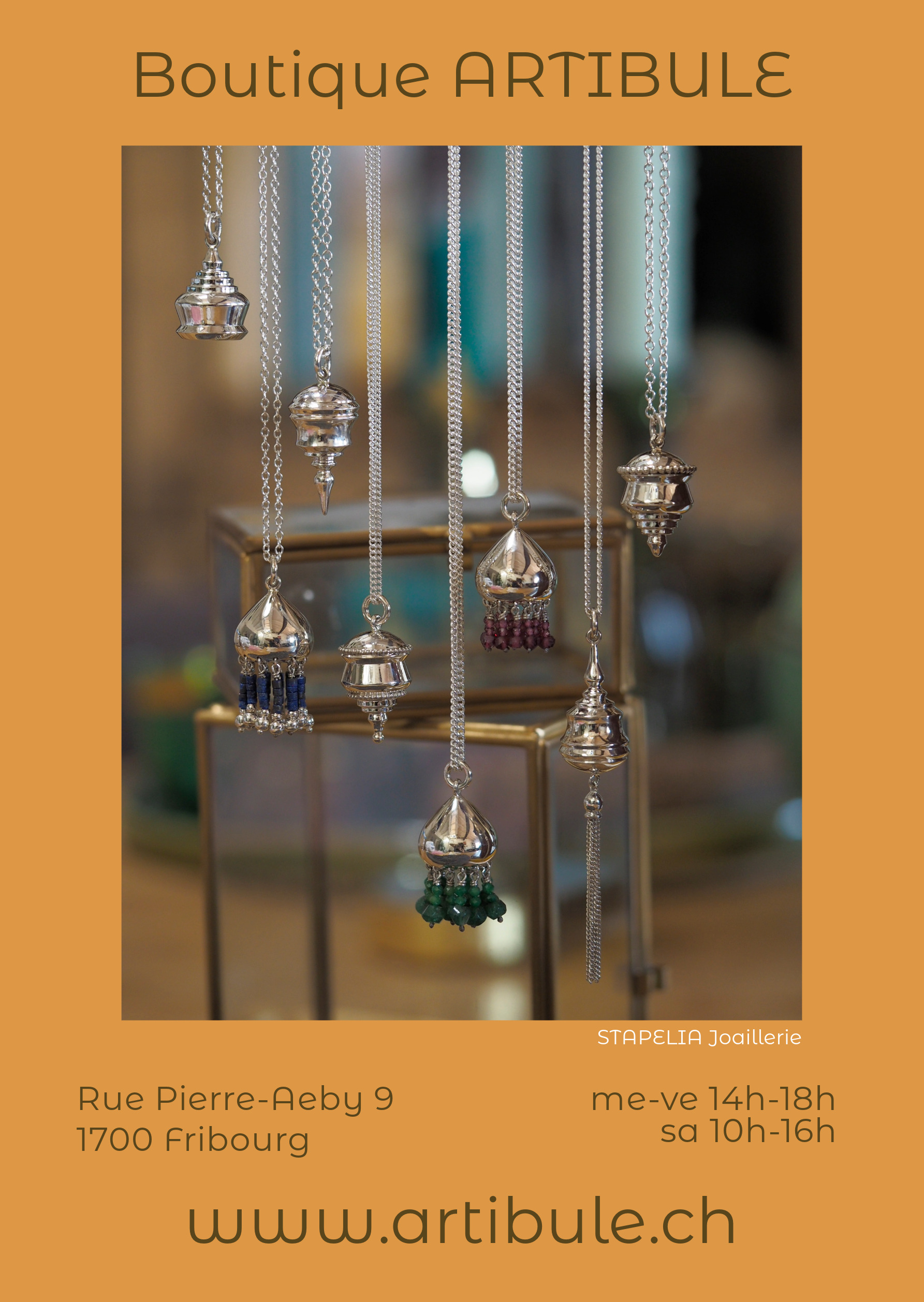 La boutique Artibule sera fermée le vendredi après-midi 15 décembre (mais elle sera ouverte le samedi 16 toute la journée). Vous pourrez retrouver deux artisanes de la boutique, Nancy Koch et Anne-Carole Rueger Ducret au Marché de Noël des Artisans créateurs qui se tiendra du 15 au 17 décembre dans les salles de l’Arsen’Alt, derrière les remparts 12 à Fribourg.